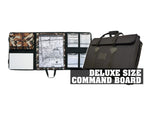 The Deluxe size board was designed for operations requiring the use of large maps, like the Military, Wildland Firefighting and Search and Rescue. The Deluxe board folds to 16”x24” and opens to 30”x60”and can accommodate any Incident Command Package. The center panel is designed to accommodate several map pouches that are attached with metal “O” Rings that allow the pouches to be flipped to both the right and left panels. The Deluxe Command Board includes one large map pouch. Additional map pouches can be purchased separately.