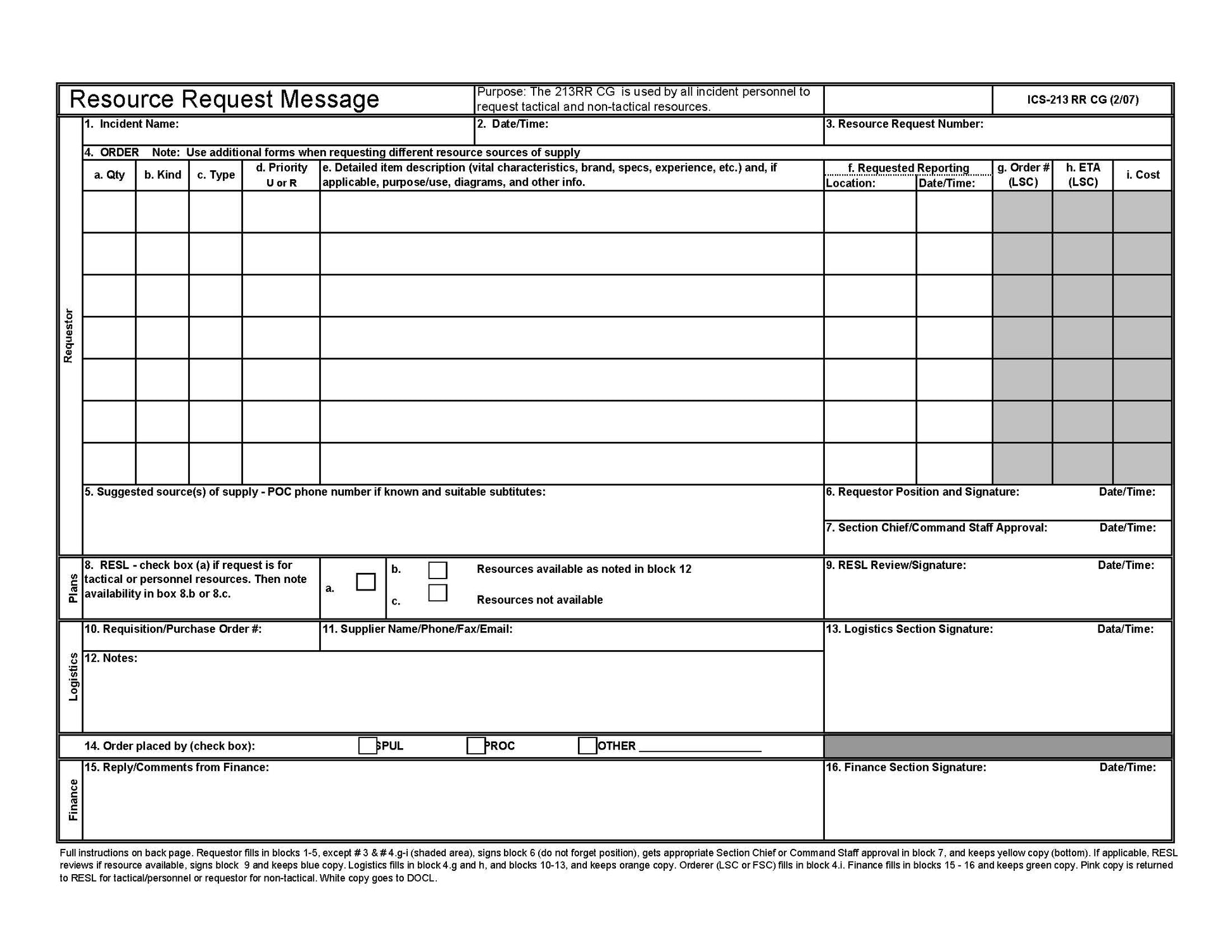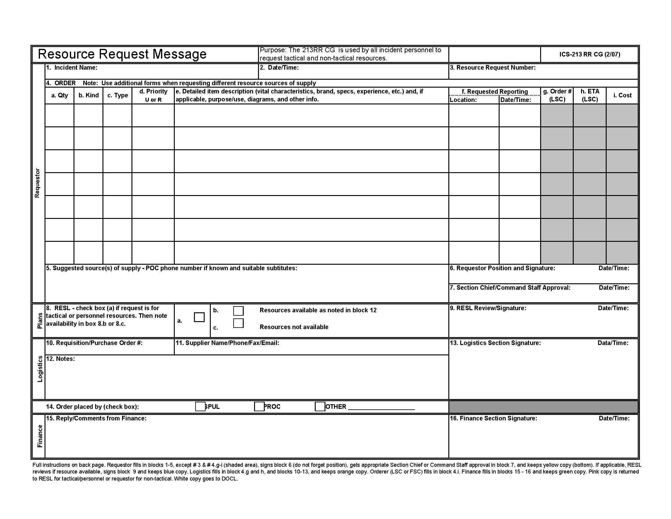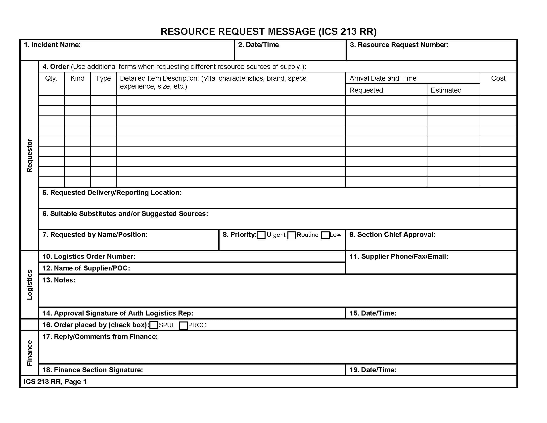 ICS-213RR Resources Request Message Form