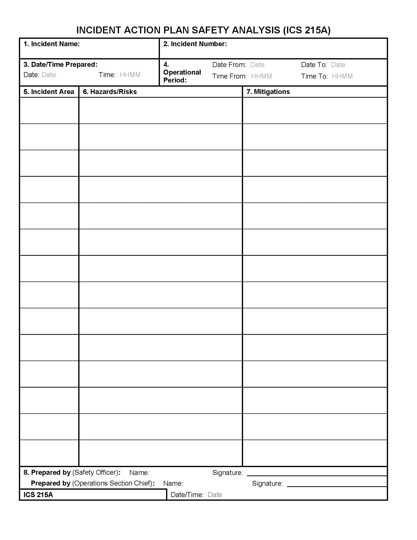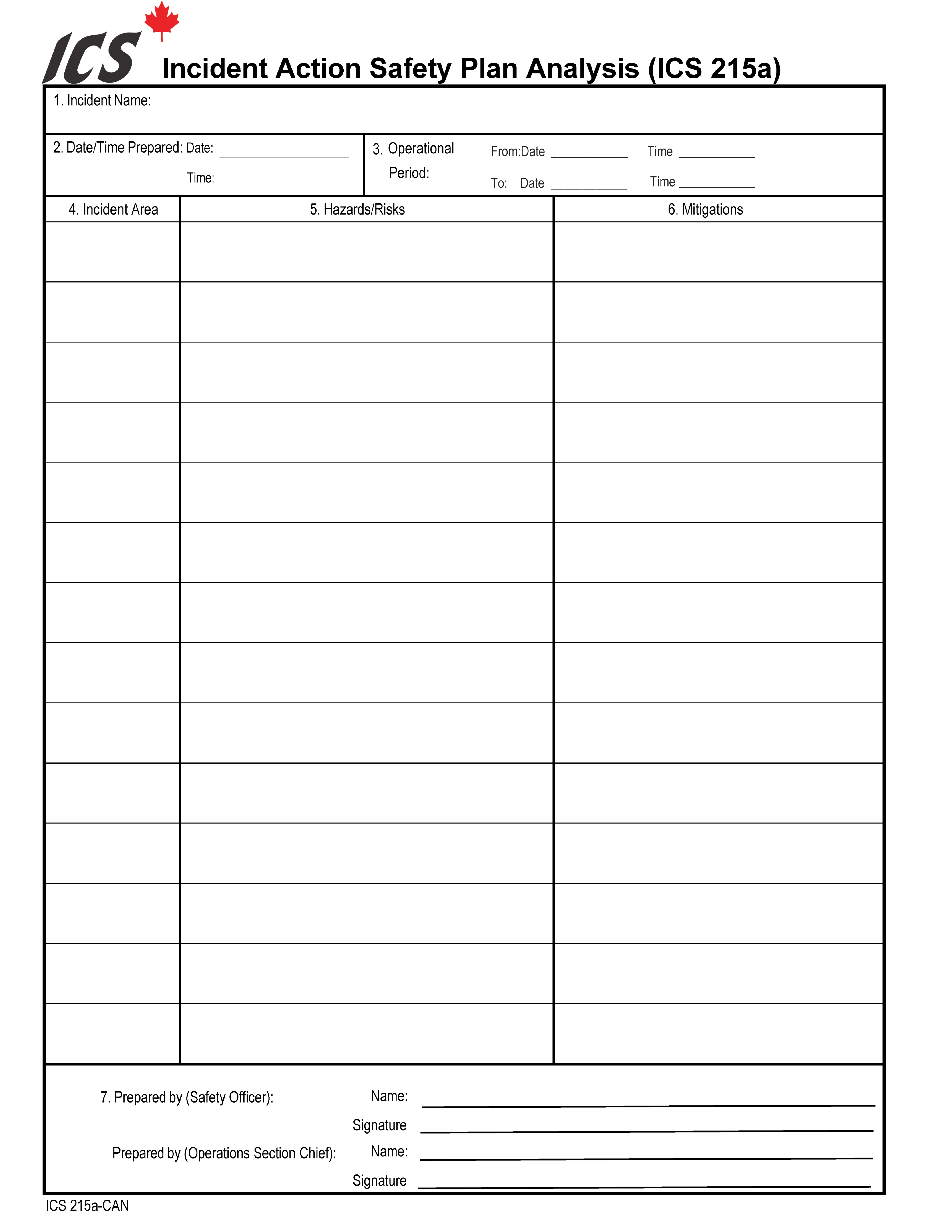 ICS-215a Hazard/Risk Analysis Form Poster